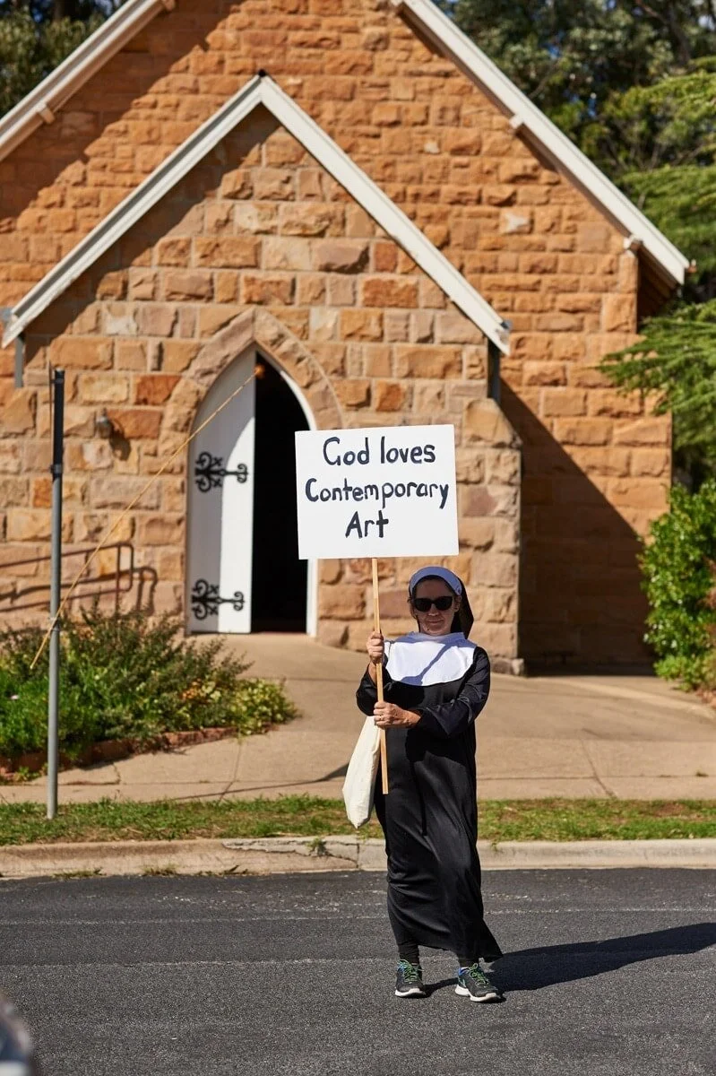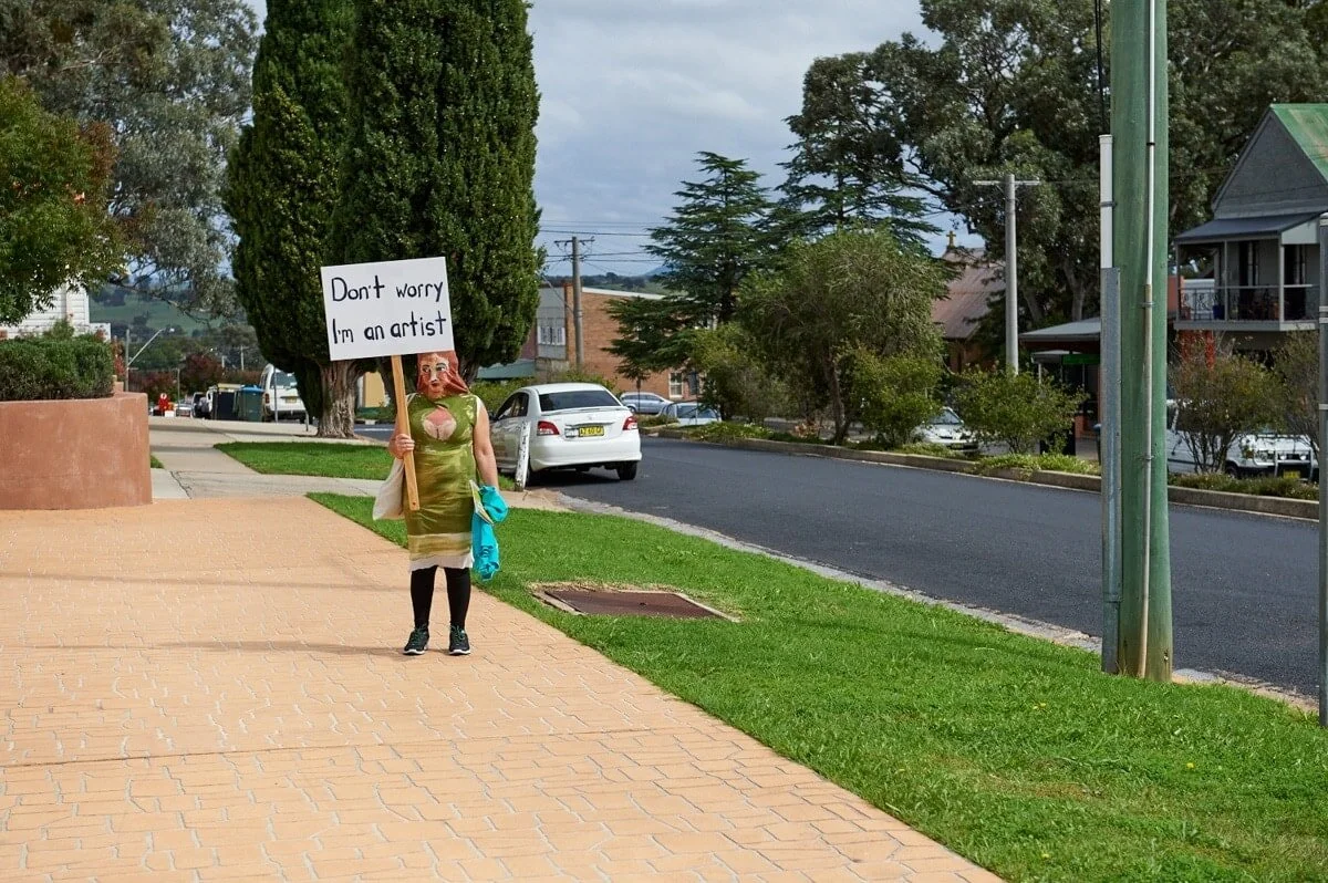 One of the aspects of daily life that Brescia confronts is the invisibility of the middle-aged woman in Australian society. Her experiences of life in the suburbs resonates with the personal histories and stories of many Australians. As a mother and wife, Brescia also reflects the extraordinary, unsung heroism of many Australian women, who quietly manage multiple responsibilities and dependents, whiel receiving little or no gratitude or accolades. This is a reality for countless women across the globe and, in her performances, Brescia is paying homage and offering a small recompense to the faceless, anonymous, unrecognised women of the world.